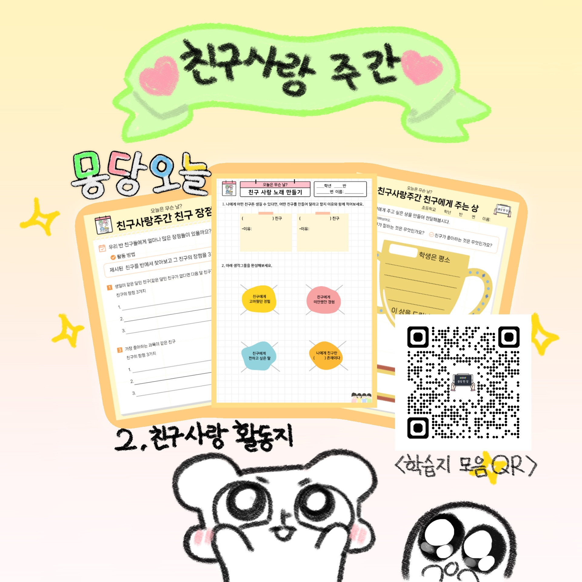 친구의 소중함에 대해 생각하고 행복한 학교 생활을 위한 친구 사랑을 실천해볼까요?