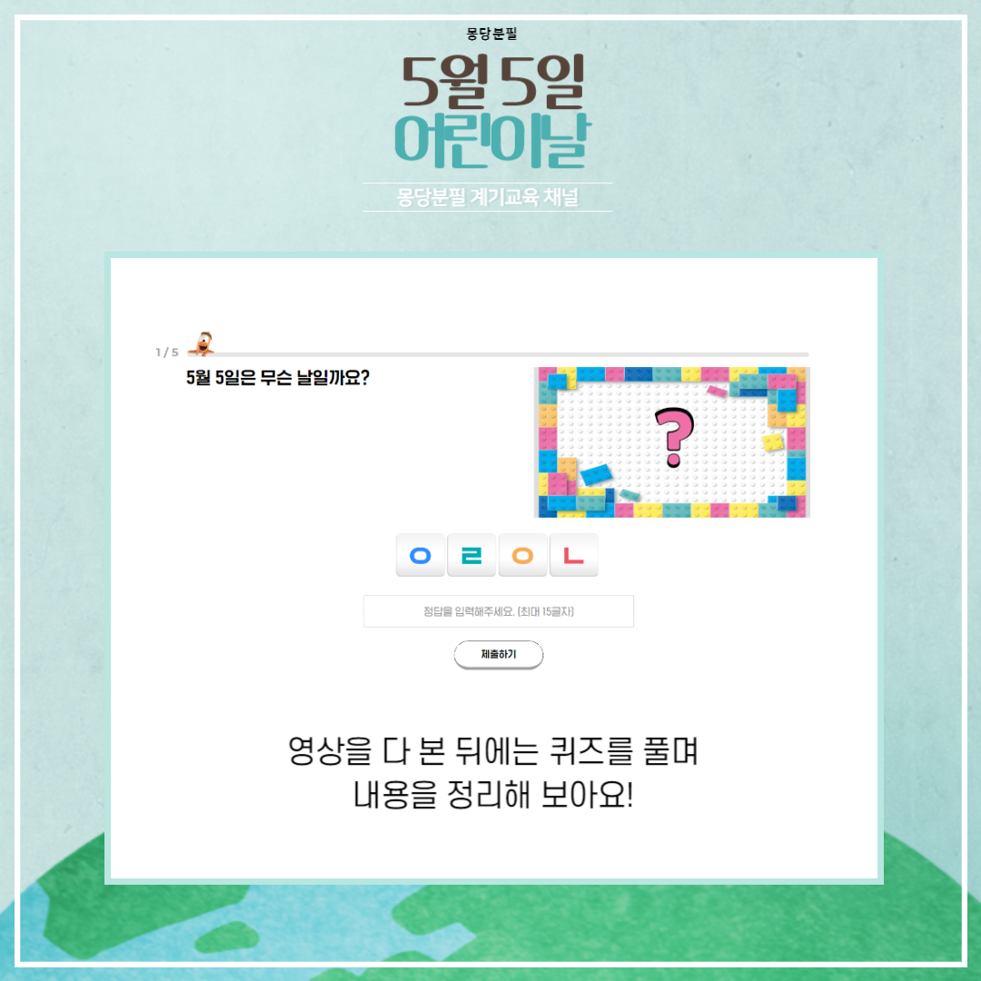 영상을 다 본 후 어린이날 퀴즈앤 문제를 풀어보아요~!